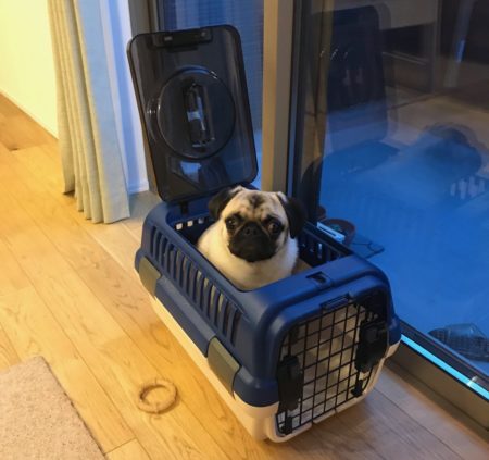 パグは成犬で5kg~8㎏になると聞いていたので、それに合う大きさのクレートを選びたいと思いました。